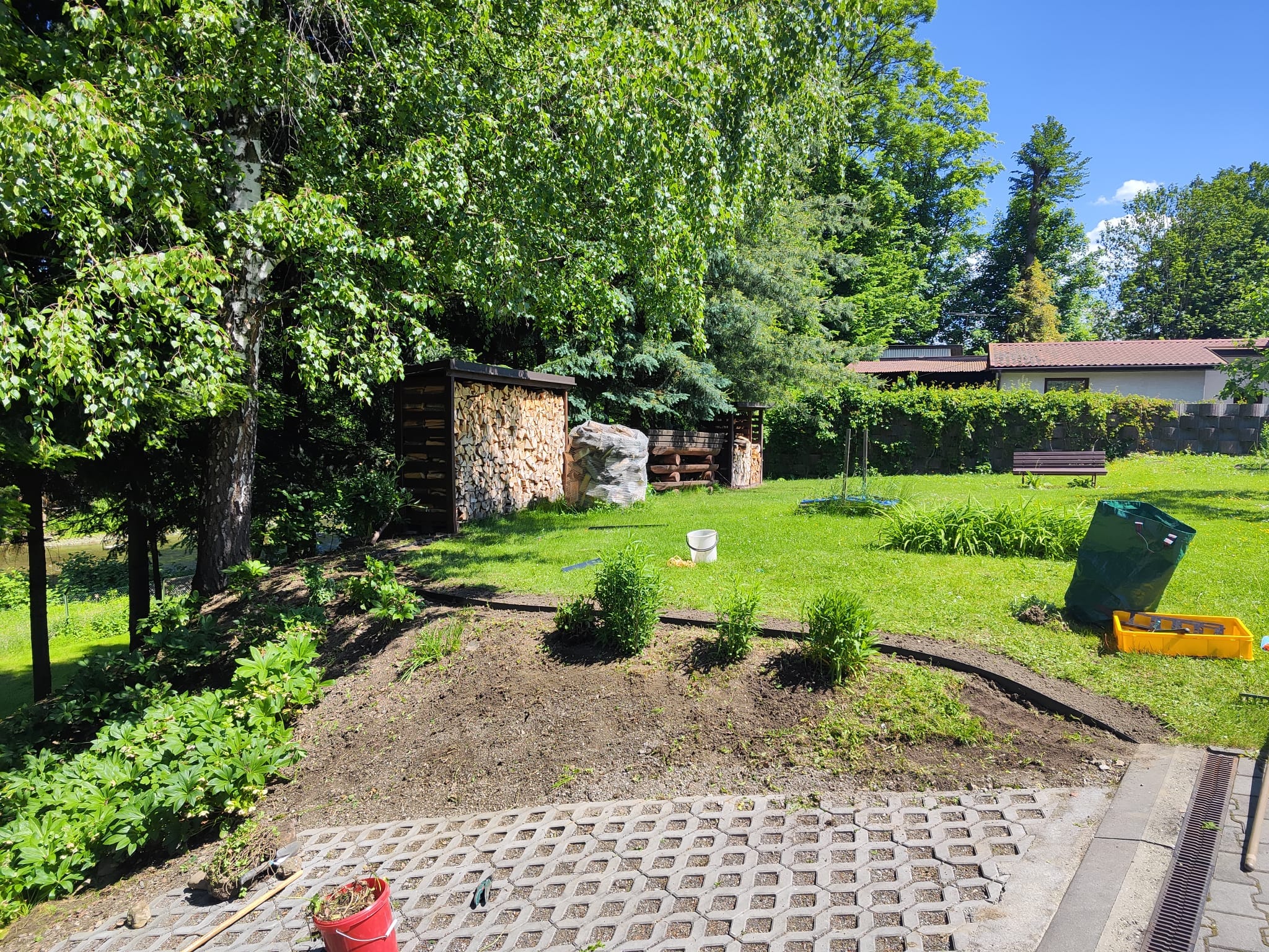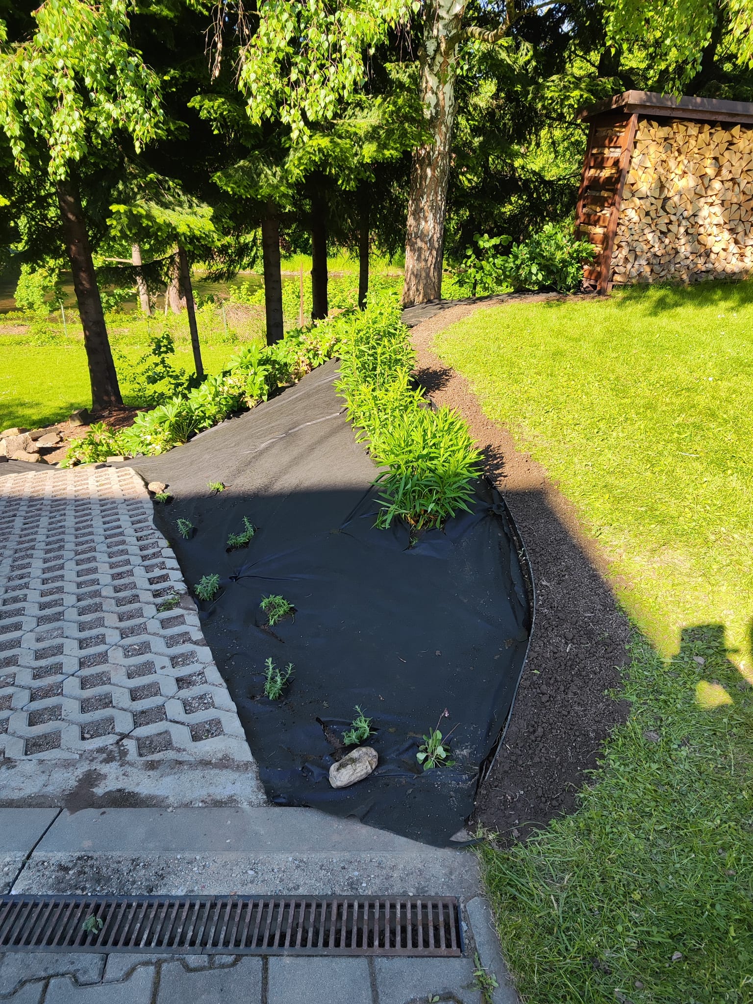 Níže si můžete prohlédnout fotografie z realizace záhonu v Třinci. Svah byl před úpravou zarostlý trsy kopřiv a vysokou trávou. Nejprve jsme odstranili starý porost, upravili tvar svahu a usadili obrubník, který odděluje svah od trávníku. Svah jsme přikryli netkanou textilií a následně proběhla samotná výsadba.